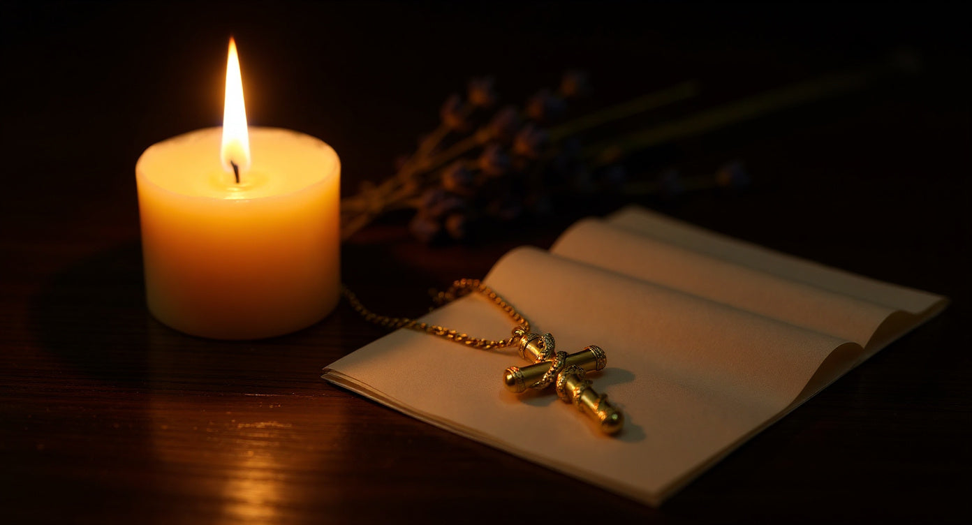 The Eternal Cross Necklace is a timeless way to carry their presence with you — a sacred piece of comfort, strength, and quiet remembrance.